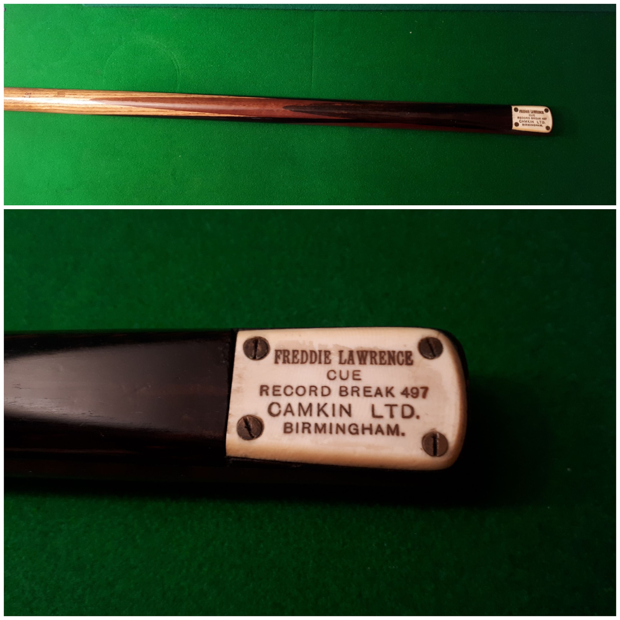 The Freddie Lawrence Record break (497) cue by Camkin Limited, Birmingham.